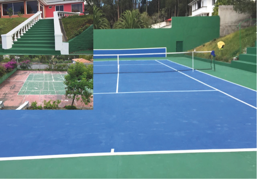 casa particular conocoto Quito EL TRABAJO incluyó parqueaderos epoxicos, pintura acrílica para cancha , gradas interiores y laterales y paredes traseras